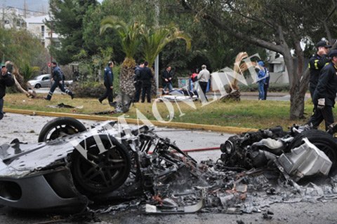 Theo trang Vimaonline, do điều kiện thời tiết ẩm ướt đường trơn, chiếc Ferrari đã chạy tốc độ cao đã mất lái đâm vào một gốc cây khiến xe gãy đôi và bốc cháy.