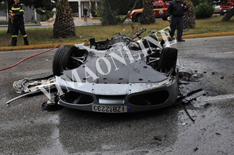 Chiếc Ferrari F430 đã cháy rụi vào sáng 22/2 ở ngoại ô thủ đô Athens của Hy Lạp sau khi đâm vào một gốc cây do đường trơn. Hai người trên xe đã may mắn thoát chết.