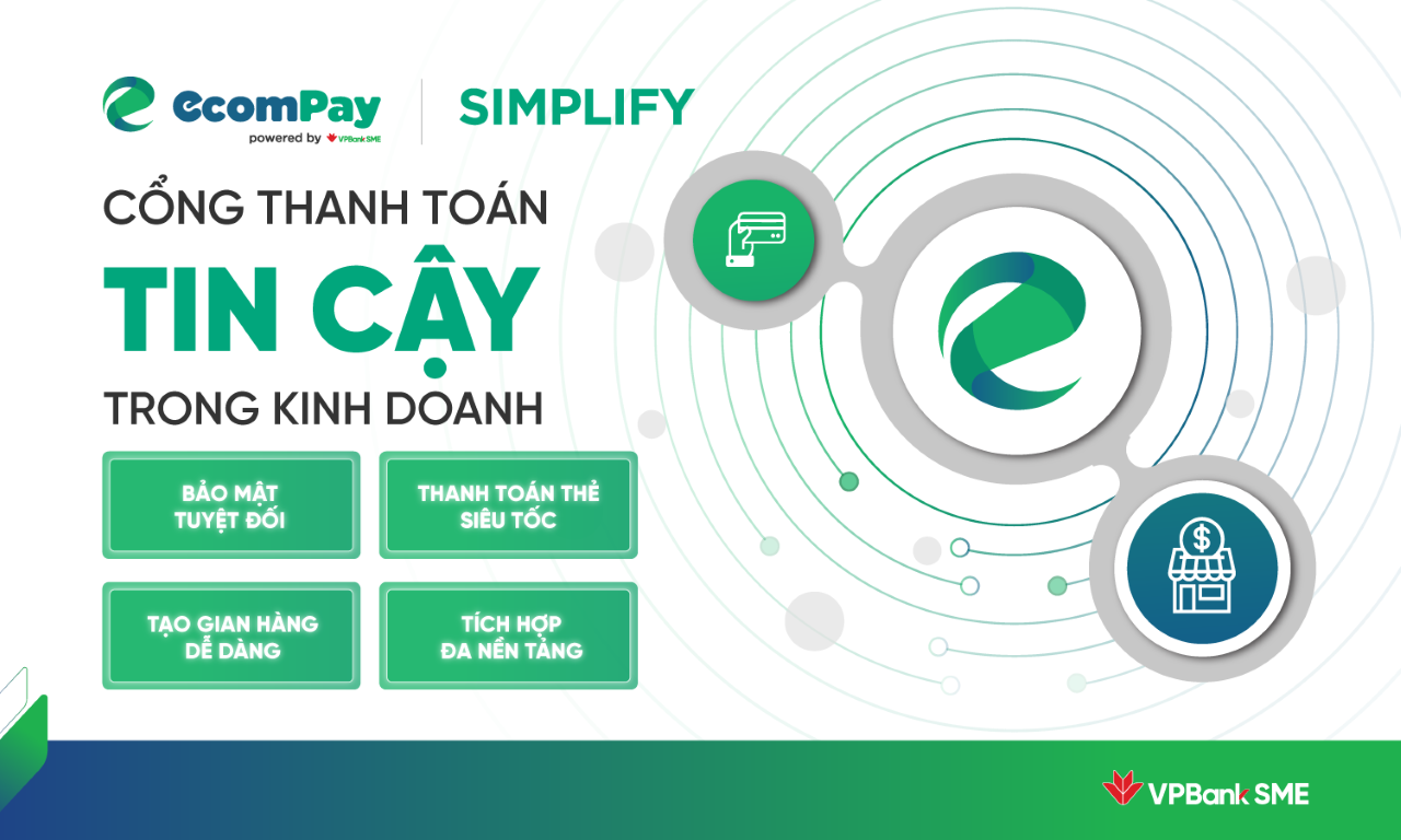 Sự ưu việt của Ecompay/Simplify đã mang đến lợi ích cho hàng trăm doanh nghiệp khi thúc đẩy quá trình chuyển đổi số, đặc biệt trong thời điểm dịch Covid-19 và được kỳ vọng sẽ thổi bùng sinh lực để các doanh nghiệp SME có thể tăng tốc trên đường đua thương mại điện tử trong thời gian tới. Cùng với hỗ trợ giải pháp thanh toán trực tuyến, VPBank còn hỗ trợ nguồn vốn lưu động cho doanh nghiệp qua thông qua việc cấp vốn không cần tài sản đảm bảo hạn mức đến 3 tỉ đồng, hoặc thẻ tín dụng doanh nghiệp VPBiz hạn mức 3 tỉ đồng giúp doanh nghiệp tận dụng nguồn vốn miễn lãi lên đến 55 ngày, tận hưởng nhiều chương trình hoàn tiền đến 4% cho các lĩnh vực quảng cáo online, ẩm thực, khách sạn, vé máy bay, mua phần mềm… qua đó tối ưu hóa chi phí, dòng tiền kinh doanh.
