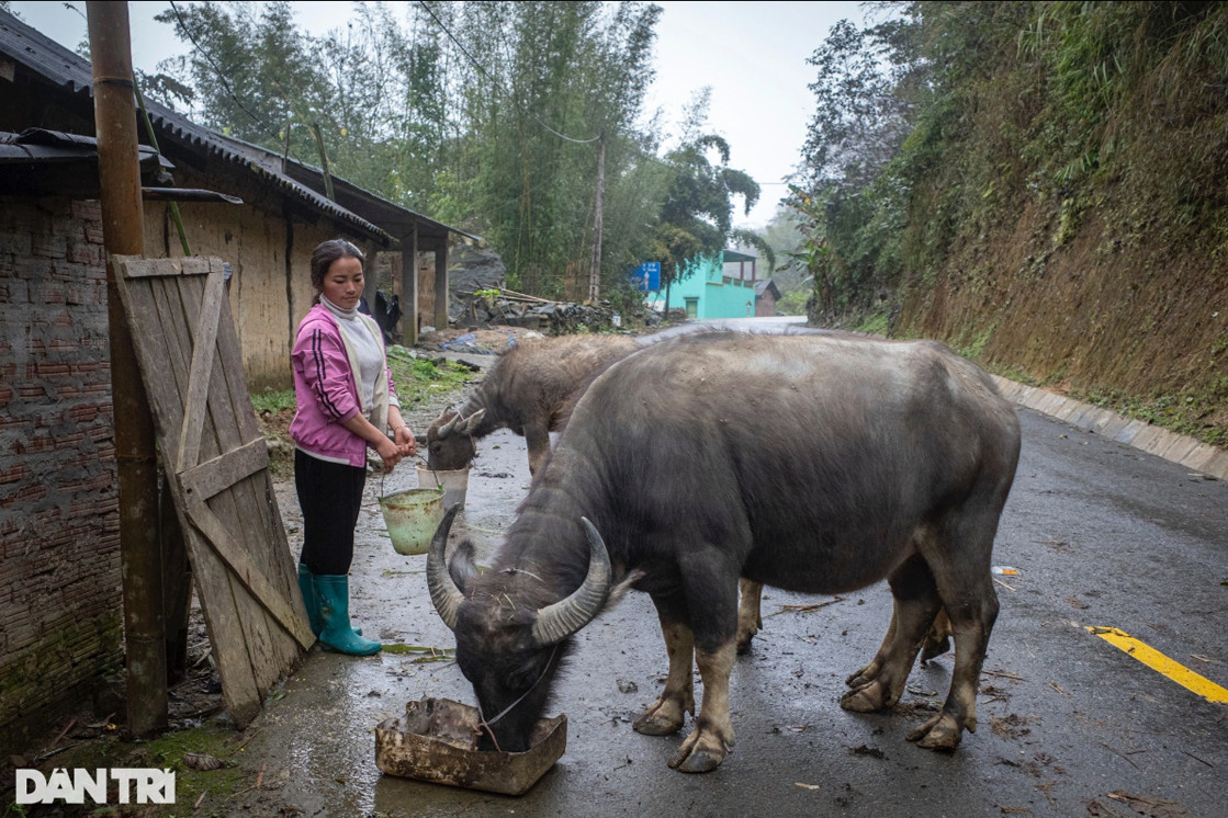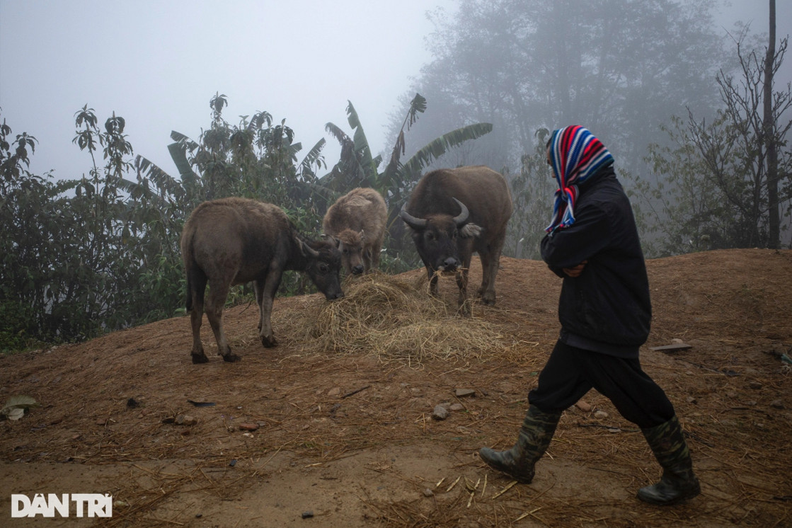 Chị Thào Thị Tài cho biết, để đối phó với đợt rét lần này, từ 2 ngày trước chị đã cho trâu về chuồng, chuẩn bị sẵn thức ăn. "Nếu nhiệt độ xuống thấp quá cũng có sẵn củi khô để đốt sưởi ấm", chị Tài nói.Một số gia đình do chưa nắm bắt được thông tin về đợt không khí lạnh này nên khi thời tiết trở rét họ mới bắt đầu dắt trâu, bò đi tránh.Củi khô không thể thiếu đối để đối phó với rét đậm, rét hại. Dù trong mỗi gia đình còn nhiều củi dự trữ, hàng ngày người dân vẫn chủ động đi nhặt thêm để phòng đợt rét kéo dài.Một người phụ nữ Mông buộc những bó cỏ vừa cắt bên sườn núi lên xe về làm thức ăn cho gia súc do không thể lùa đàn trâu đi ăn nơi xa.Các em học sinh tại thôn Ngải Thầu Thượng vượt mưa rét tới trường.