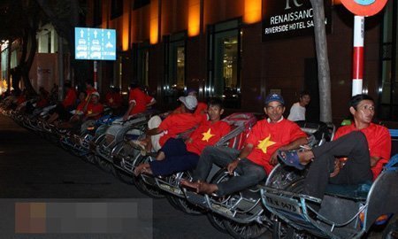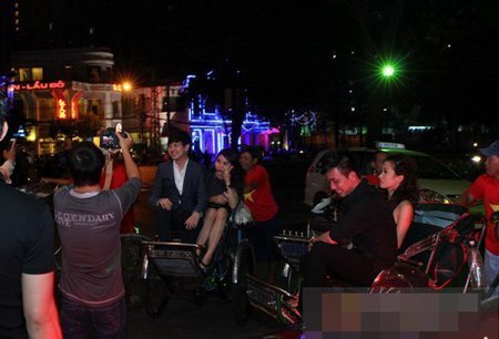 40 chiếc xích lô đưa đón những vị khách tập trung tại đại sảnh để di chuyển sang vị trí tổ chức sinh nhật kế tiếp.