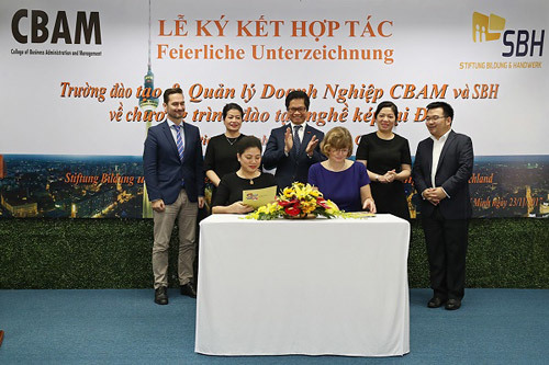 Sáng ngày 23/11, trường Đào tạo Quản lý Doanh nghiệp (CBAM) và Tập đoàn Giáo dục phi Chính phủ Phi lợi nhuận về lĩnh vực giáo dục đào tạo của Cộng hòa Liên Bang Đức (SBH) đã ký kết hợp tác đào tạo nghề kép tại Đức. Đây là chương trình giáo dục thí điểm song đôi trên toàn cầu vì tương lai của thế hệ trẻ Việt Nam.