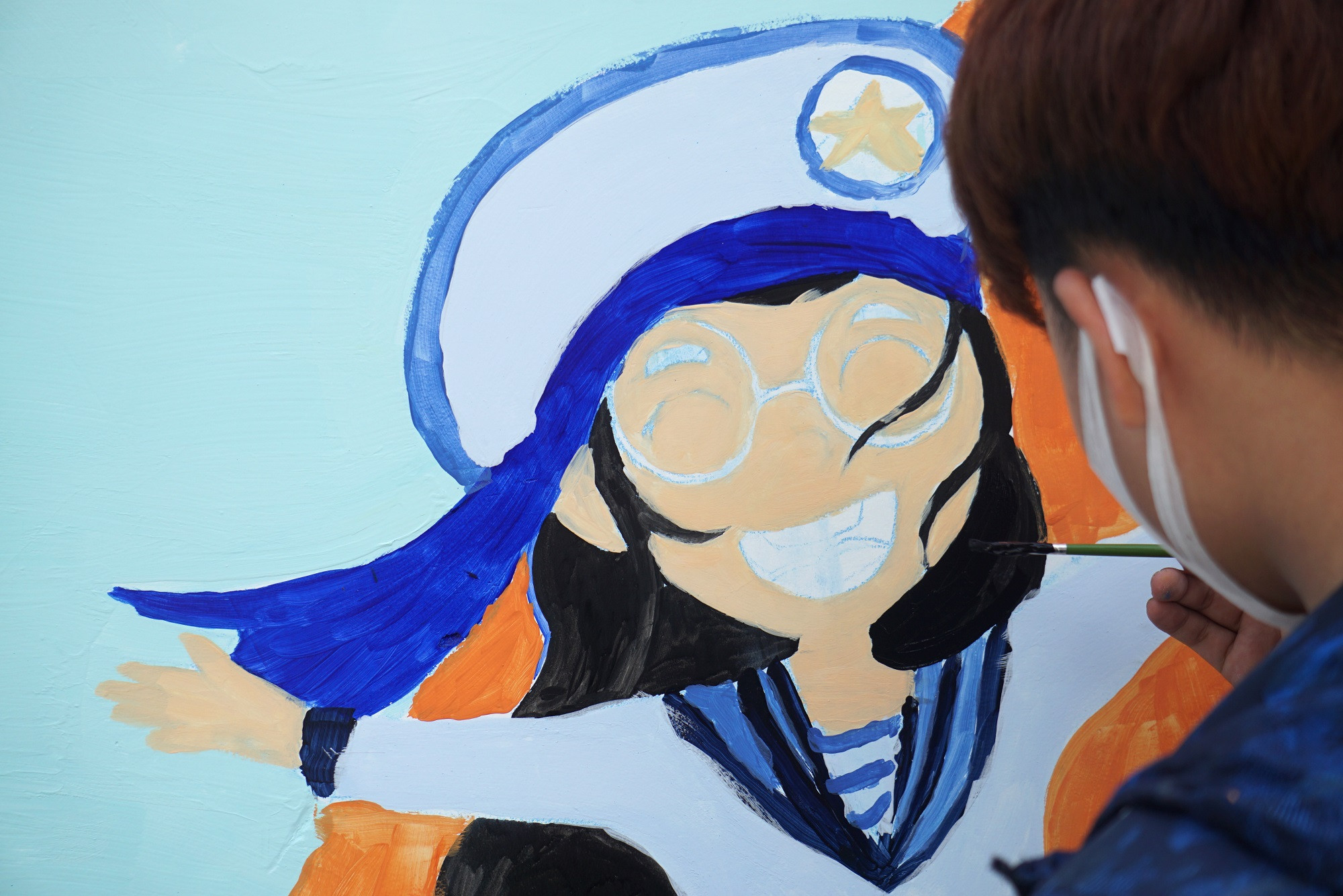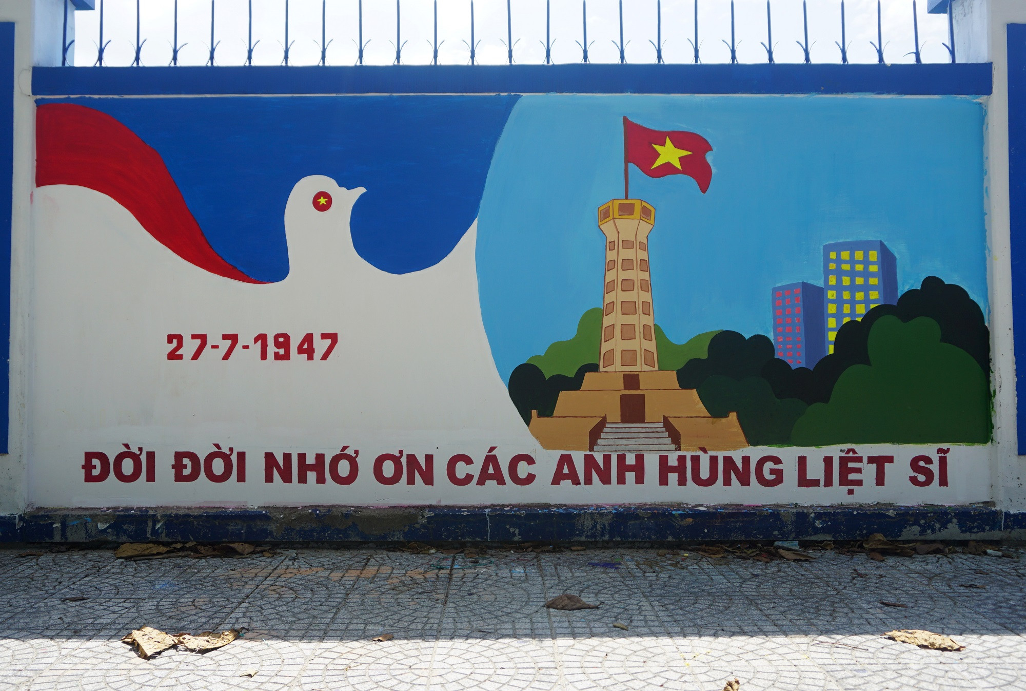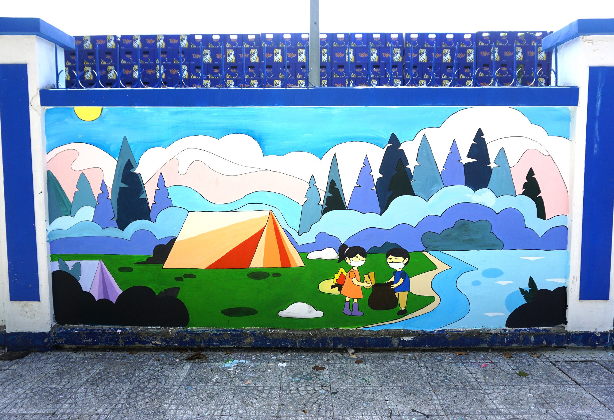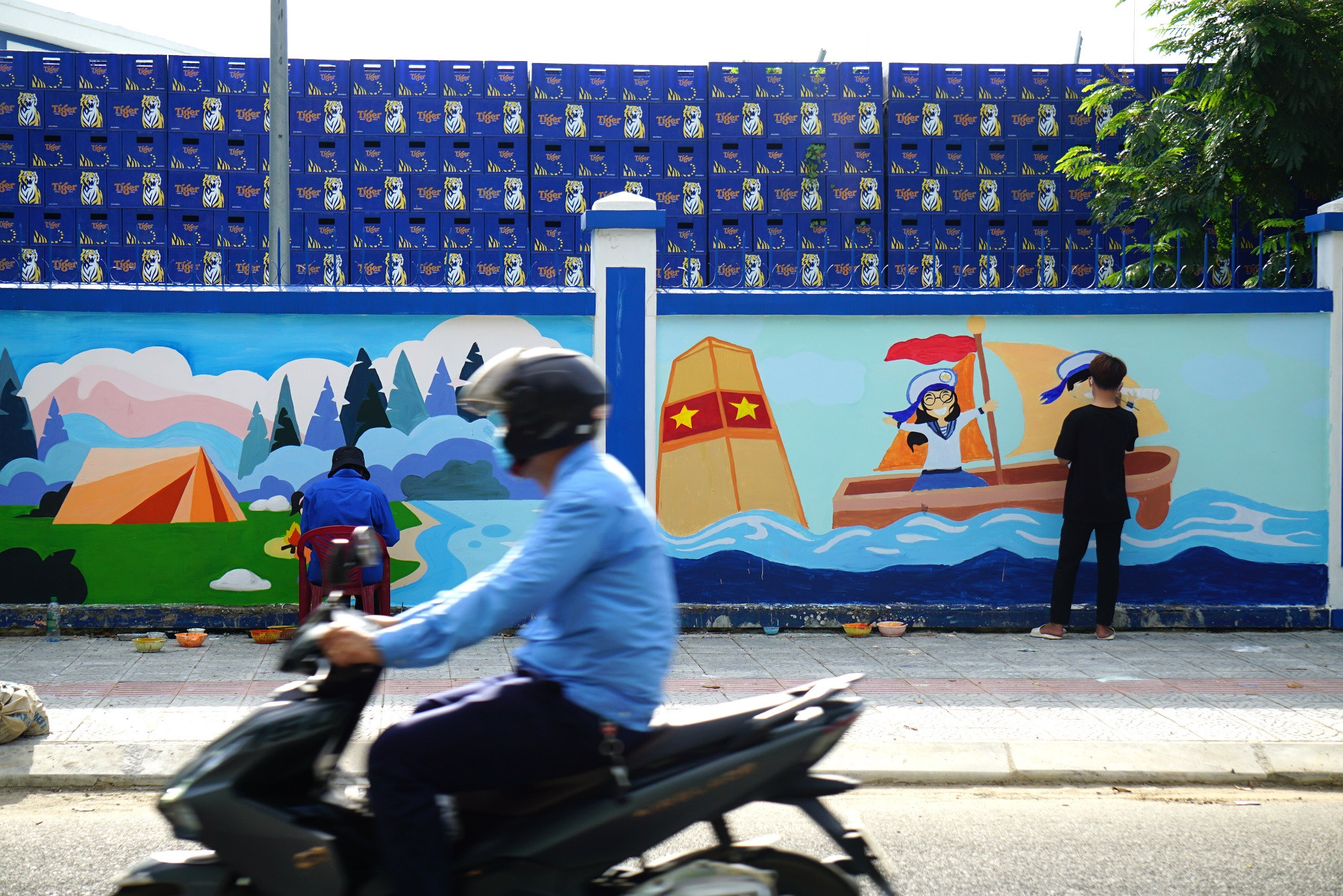 Bức tường cũ kỹ nhưng qua bàn tay khéo léo của các bạn sinh viên ở Đà Nẵng đã trở nên sinh động, đầy màu sắc.
