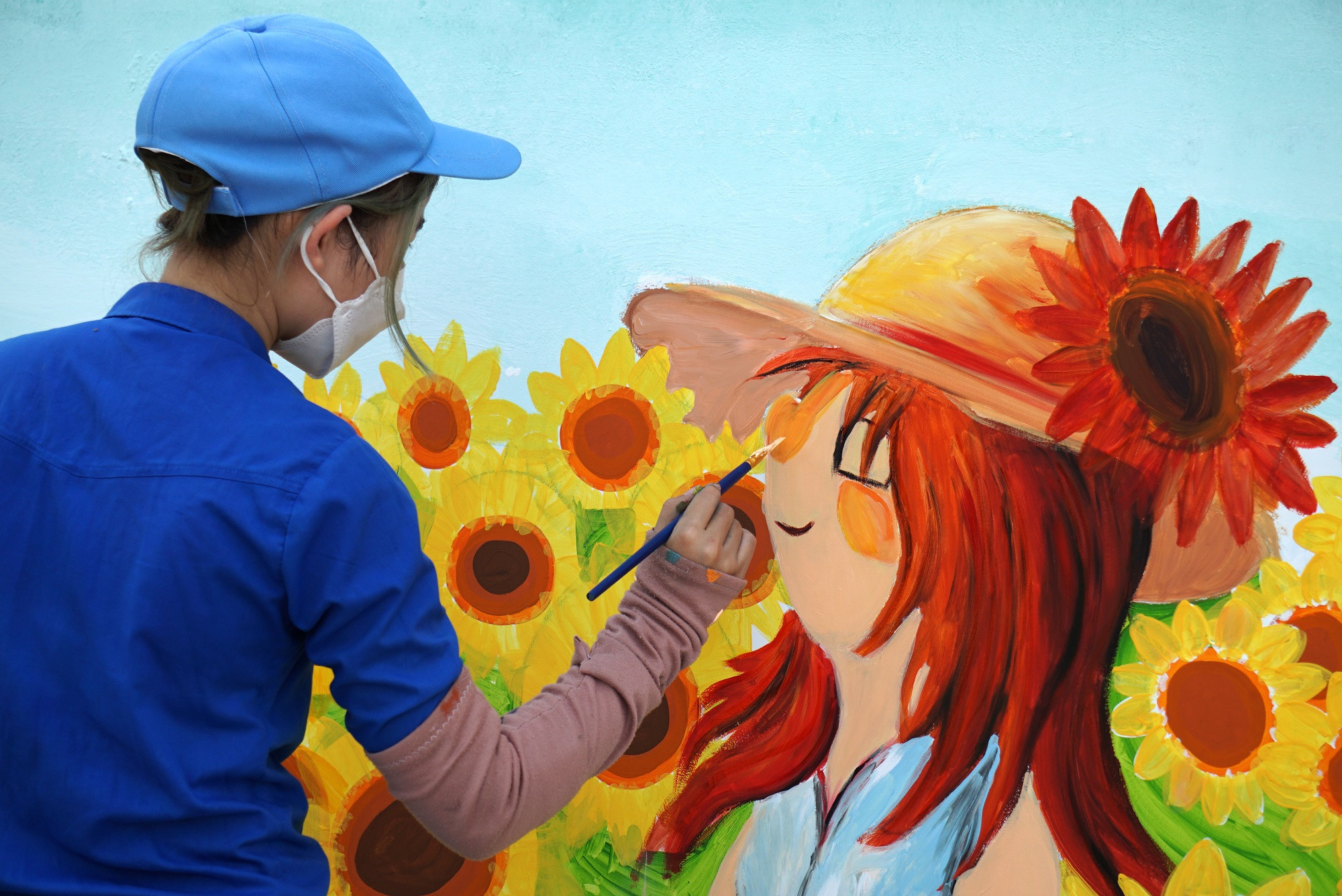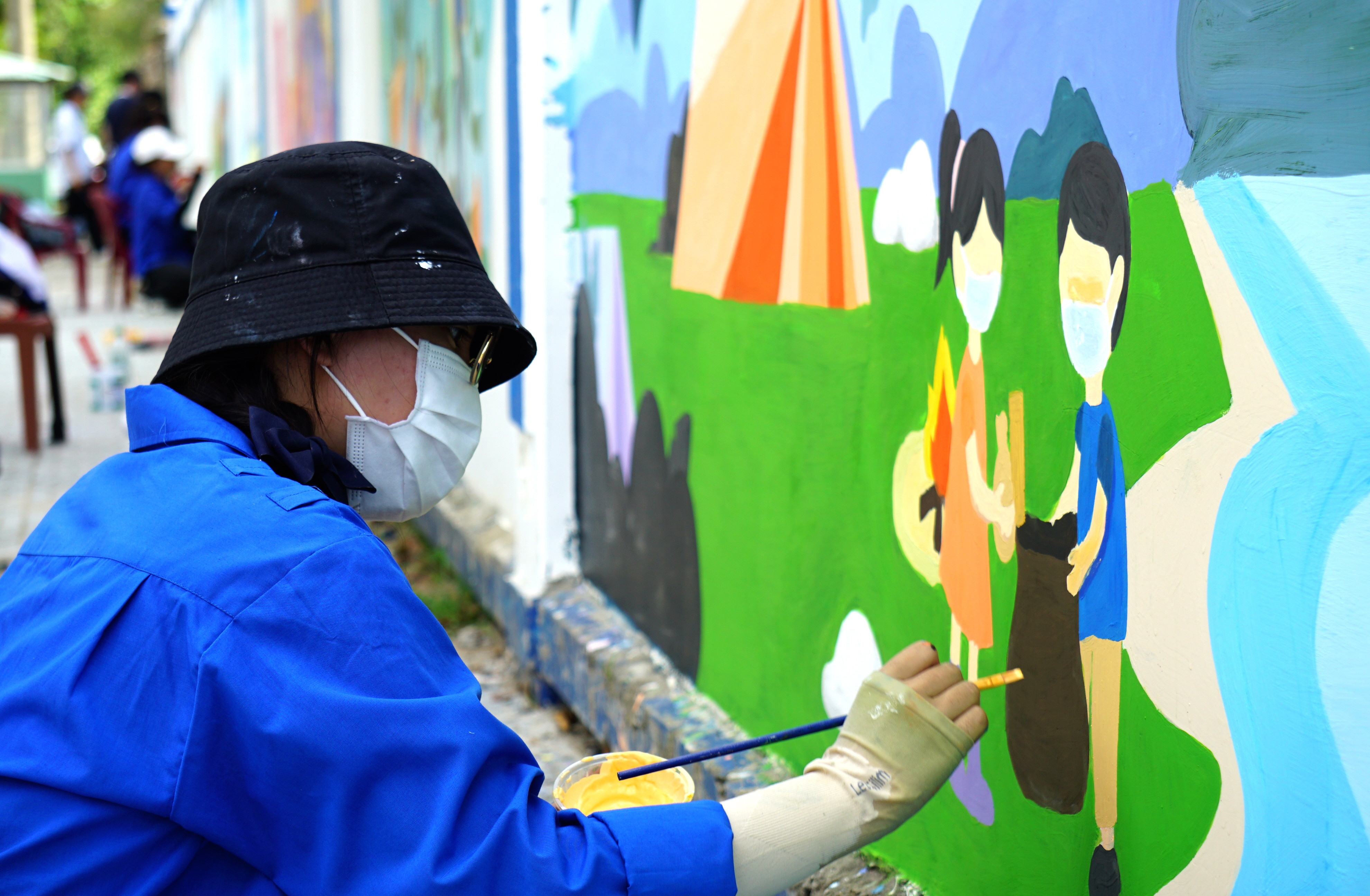 Khánh Việt (sinh viên năm thứ tư, Trường ĐH Kiến trúc) chia sẻ, ngoài thời gian học, các sinh viên tình nguyện của trường còn phối hợp với các phường để tham gia vẽ tranh, làm đẹp các tuyến phố.