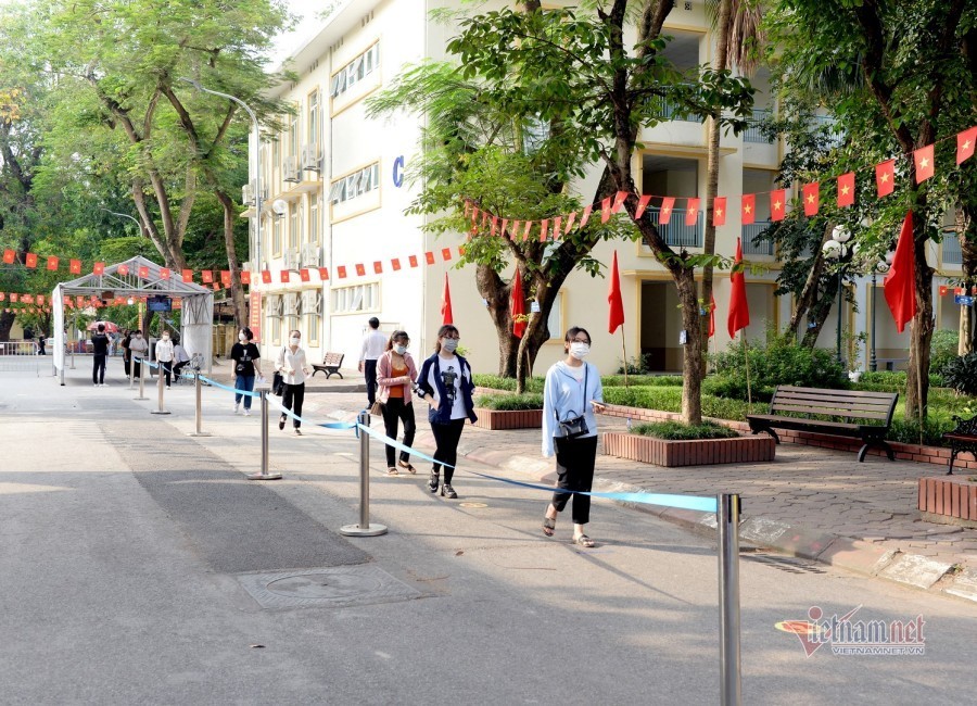 Tại Trường ĐH Khoa học Xã hội & Nhân văn (ĐH Quốc gia Hà Nội), có khoảng hơn 800 cử tri tham gia bỏ phiếu bầu. Nhà trường cũng đã bố trí các chốt an toàn y tế trong khuôn viên, trong đó tại sảnh tầng 1 đã khử khuẩn khu vực bầu cử, chuẩn bị máy đo thân nhiệt, sát khuẩn, khẩu trang.