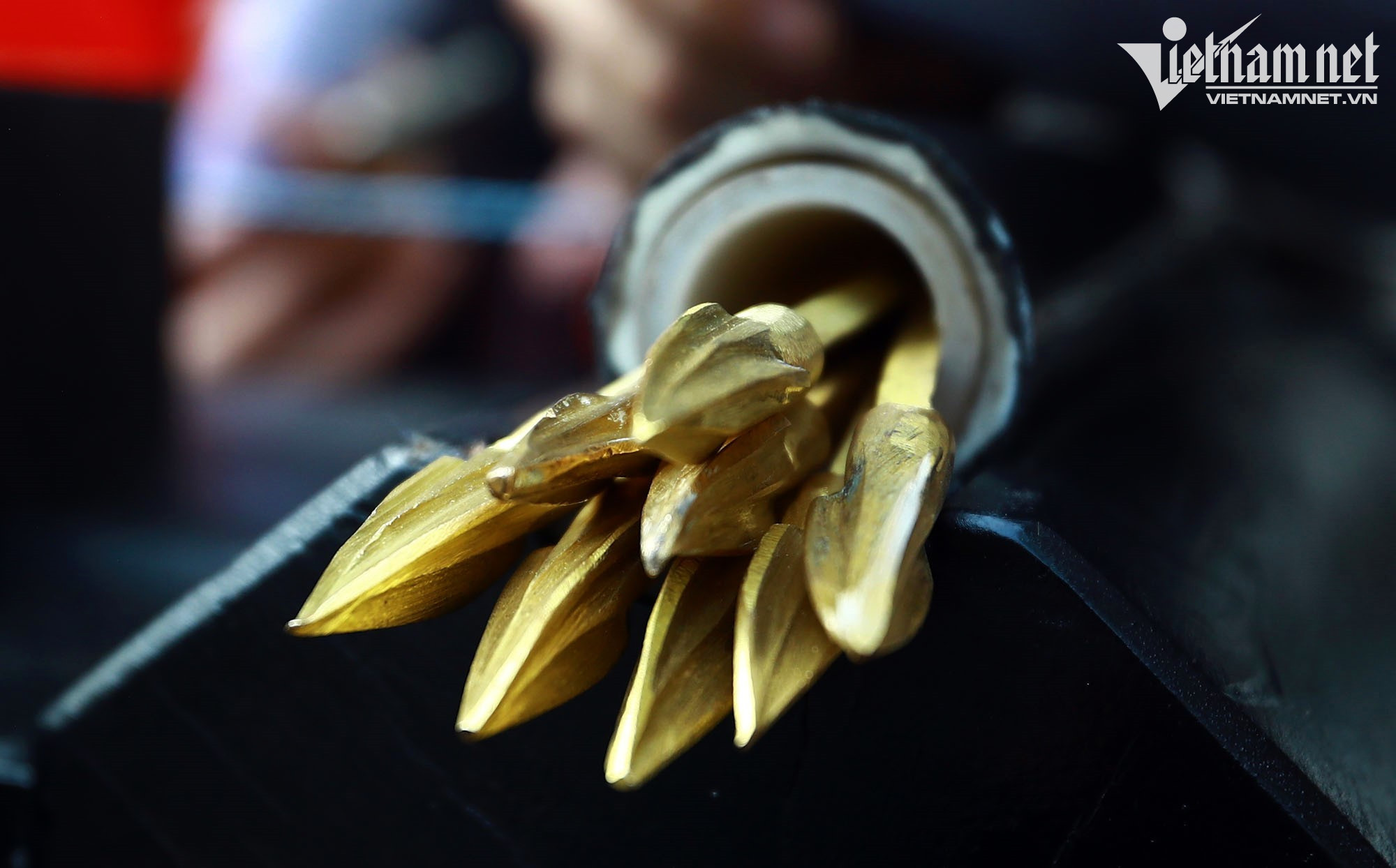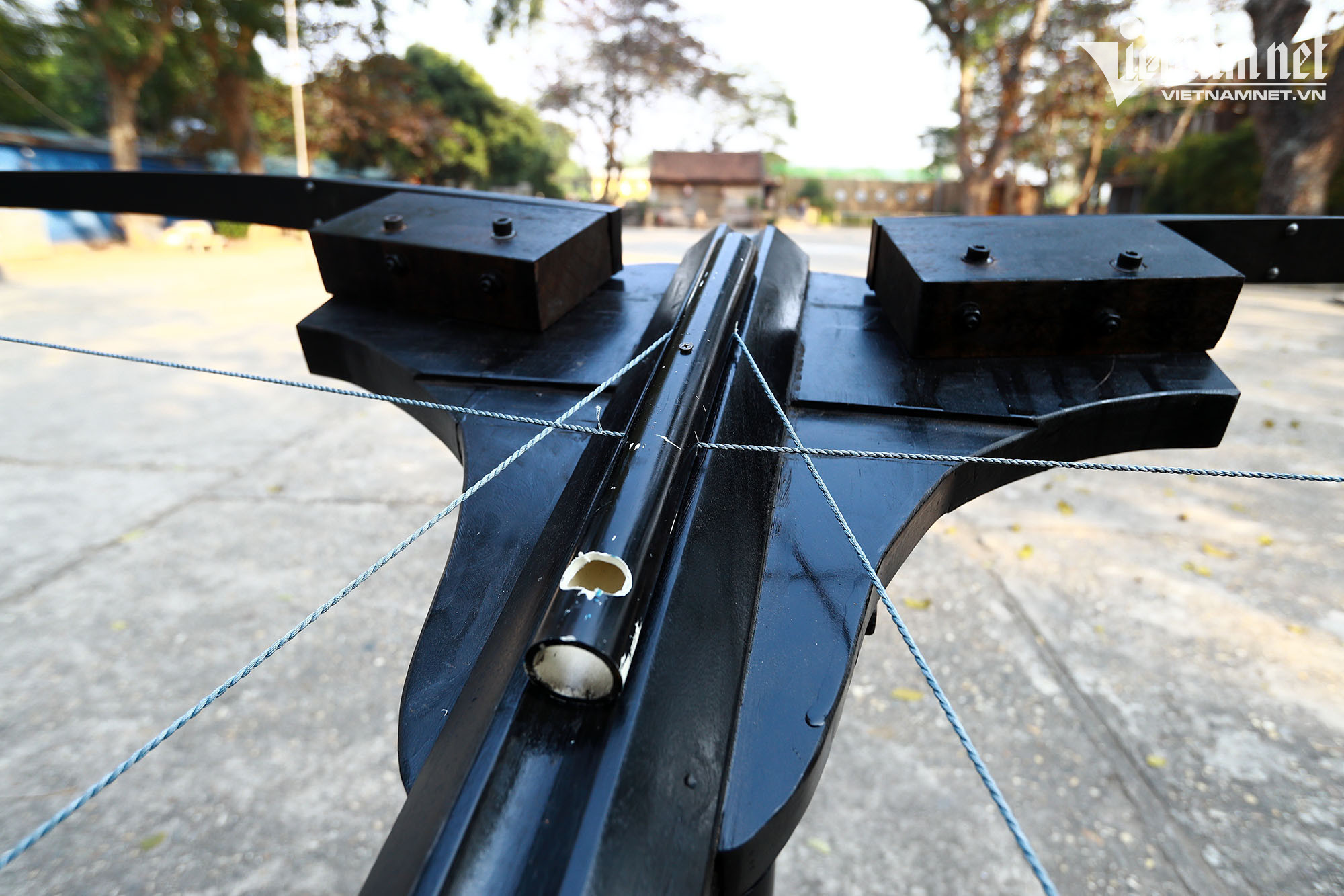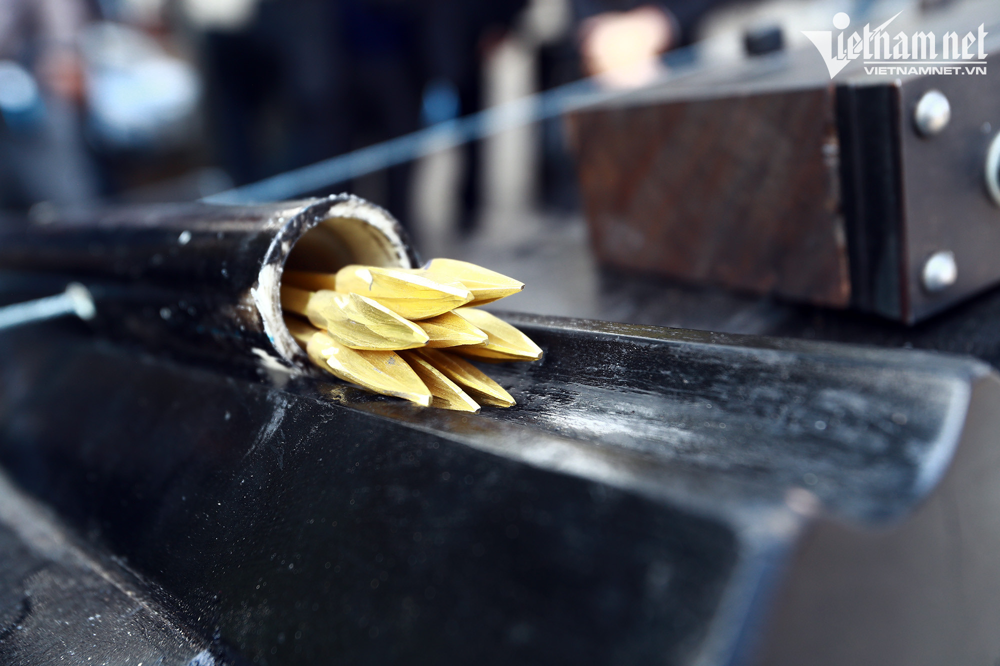 Mũi tên chỉ khoảng 10cm, thế nhưng cứ mỗi loạt bắn, 8 mũi bay cùng lúc, có thể vượt khoảng cách 100m, trước khi đâm vào bia.