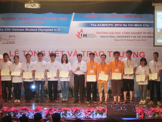 Kỳ thi Olympic Tin học sinh viên Việt Nam lần thứ 23 và thi Lập trình sinh viên quốc tế ACM/ICPC 2014 vừa diễn ra từ ngày 29 - 31/10/2014 tại TP.HCM. Lễ tổng kết và trao giải kỳ thi có sự tham dự của Thứ trưởng Bộ TT&TT Nguyễn Minh Hồng.