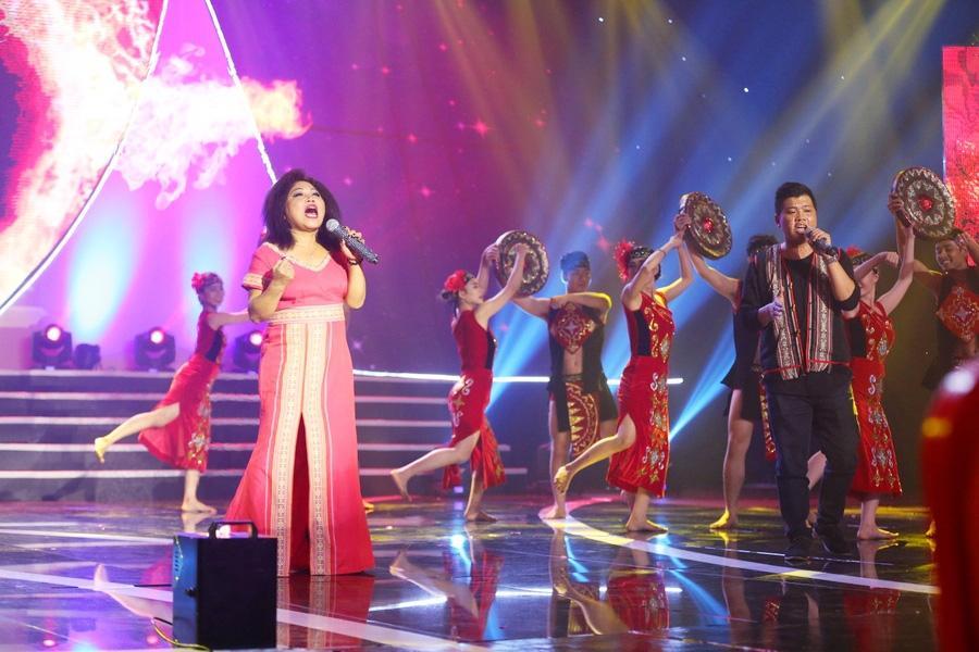 ![]() NSND Hồng Vân xúc động khi song ca cùng con trai Trê Phi, đây là tiết mục được đánh giá là xuất sắc nhất chương trình. |