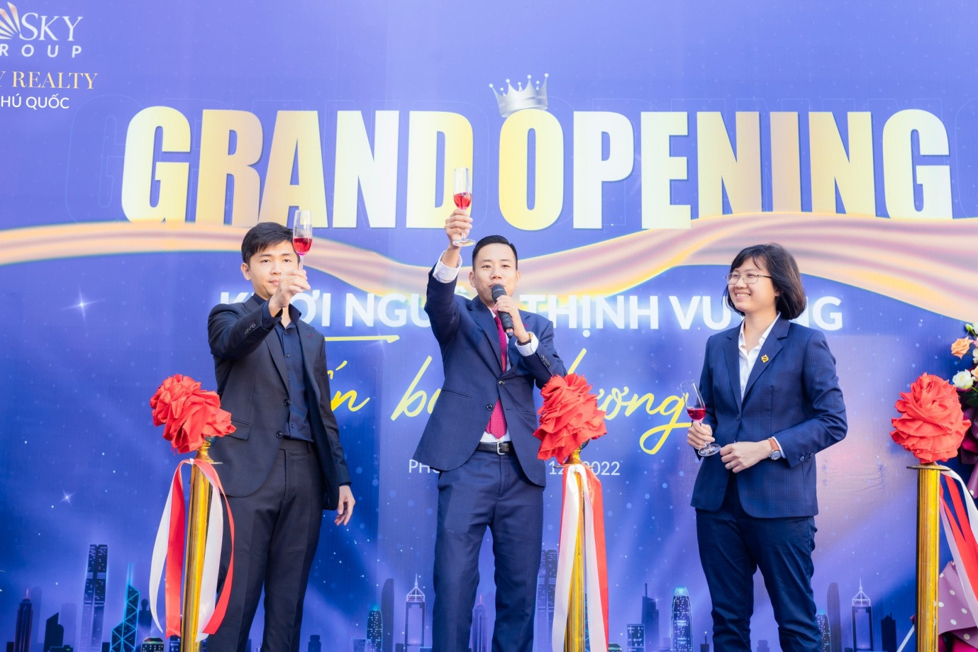 Lễ khai trương đã diễn ra long trọng và ấm cúng với sự tham dự đông đủ của ban lãnh đạo và cán bộ nhân viên Sky Realty Phú Quốc, đông đảo khách hàng và đối tác. Đặc biệt, đại diện chủ đầu tư Sun Group - đối tác chiến lược của Sky Group cũng đã có mặt, chúc mừng sự kiện.