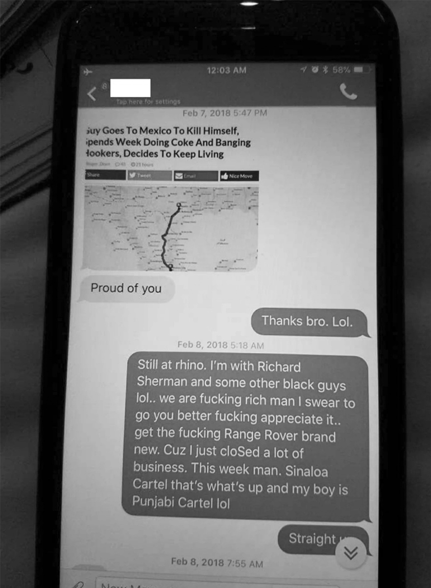 “Mua một con Range Rover mới đi, vì tôi vừa chốt được một hợp đồng, ngay tuần này. Sinaloa đấy”, Ramos nhắn cho nhân viên của mình.