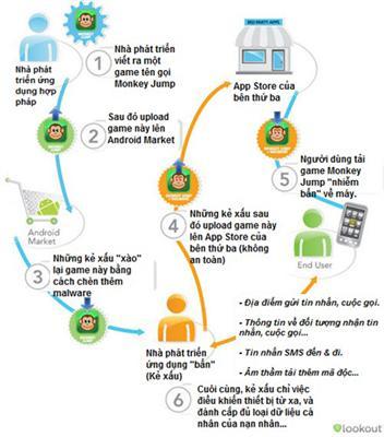 Lookout, hãng bảo mật di động chuyên giám sát các ứng dụng trên Android, Blackberry và Windows Mobile, gần đây vừa công bố “Báo cáo hiểm nguy di động Lookout” và phát hiện người dùng Android đang có nguy cơ nhiễm malware gấp 2,5 so với chỉ cách đây 6 tháng. Hiện đã có từ 500.000 đến 1 triệu người dùng (Android) bị nhiễm malware chỉ trong nửa đầu năm 2011.