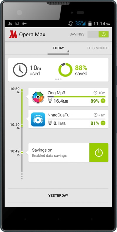 Opera Max là một ứng dụng giúp tiết kiệm dữ liệu cho hầu hết các ứng dụng và các trình duyệt trên smartphone. Nhờ vào công nghệ nén dữ liệu và video dẫn đầu thị trường của Opera mà Opera Max có khả năng nén video, hình ảnh và văn bản, cho phép người dùng tiết kiệm dữ liệu lên đến 50% so với giới hạn gói cước. Các video clip bắt đầu nhanh hơn và giảm được tình trạng “buffering” khi sử dụng Opera Max. Ngoài ra, người dùng có thể dễ dàng theo dõi và quản lý sử dụng dữ liệu di động của từng ứng dụng trên bảng điều khiển đơn giản của Opera Max.