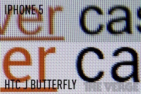 | Kí tự hiển thị trên HTC J Butterfly sắc nét hơn hẳn iPhone 5. Ảnh: The Verge |