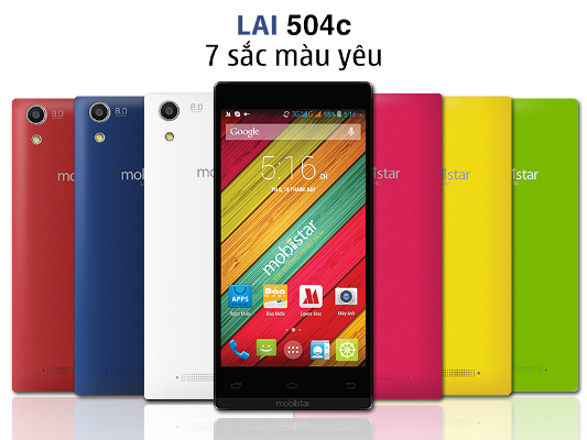 Sản phẩm gây chú ý nhất trong loạt sản phẩm lõi tứ giới thiệu đợt này là LAI 504c, đại diện tiếp theo của series sản phẩm theo chủ đề “Bảy Sắc Màu Yêu” mà Mobiistar đã lần lượt giới thiệu trong quý 3-2014.