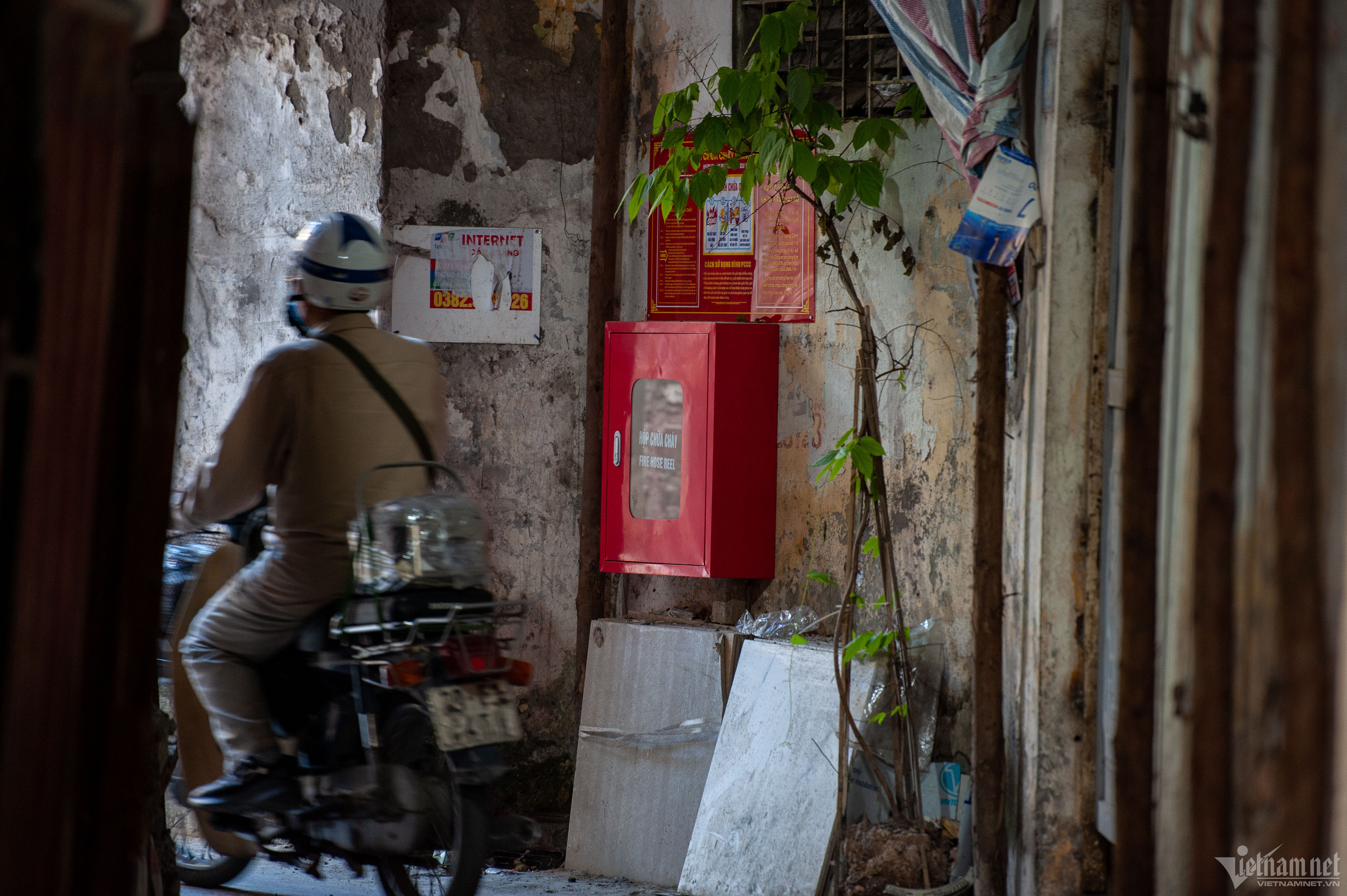 Có những hộp đựng công cụ chữa cháy lại được lắp ở vị trí không hợp lý, nhô ra trong ngõ nhỏ, người qua lại dễ bị đụng. Người dân ở khu dân cư số 5 phường Trung Phụng cho biết, đã có trường hợp người đi xe trong ngõ va vào hộp chữa cháy rồi ngã.