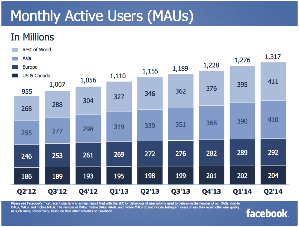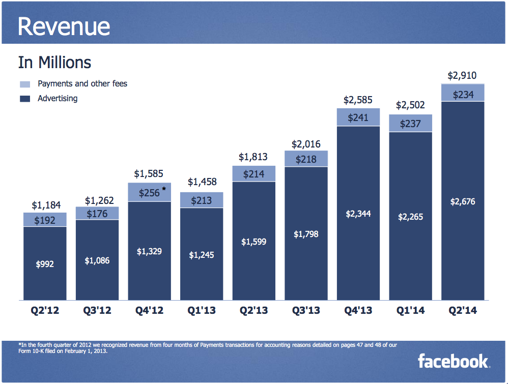 Một số con số ấn tượng từ báo cáo kinh doanh quý II/2014 của Facebook: