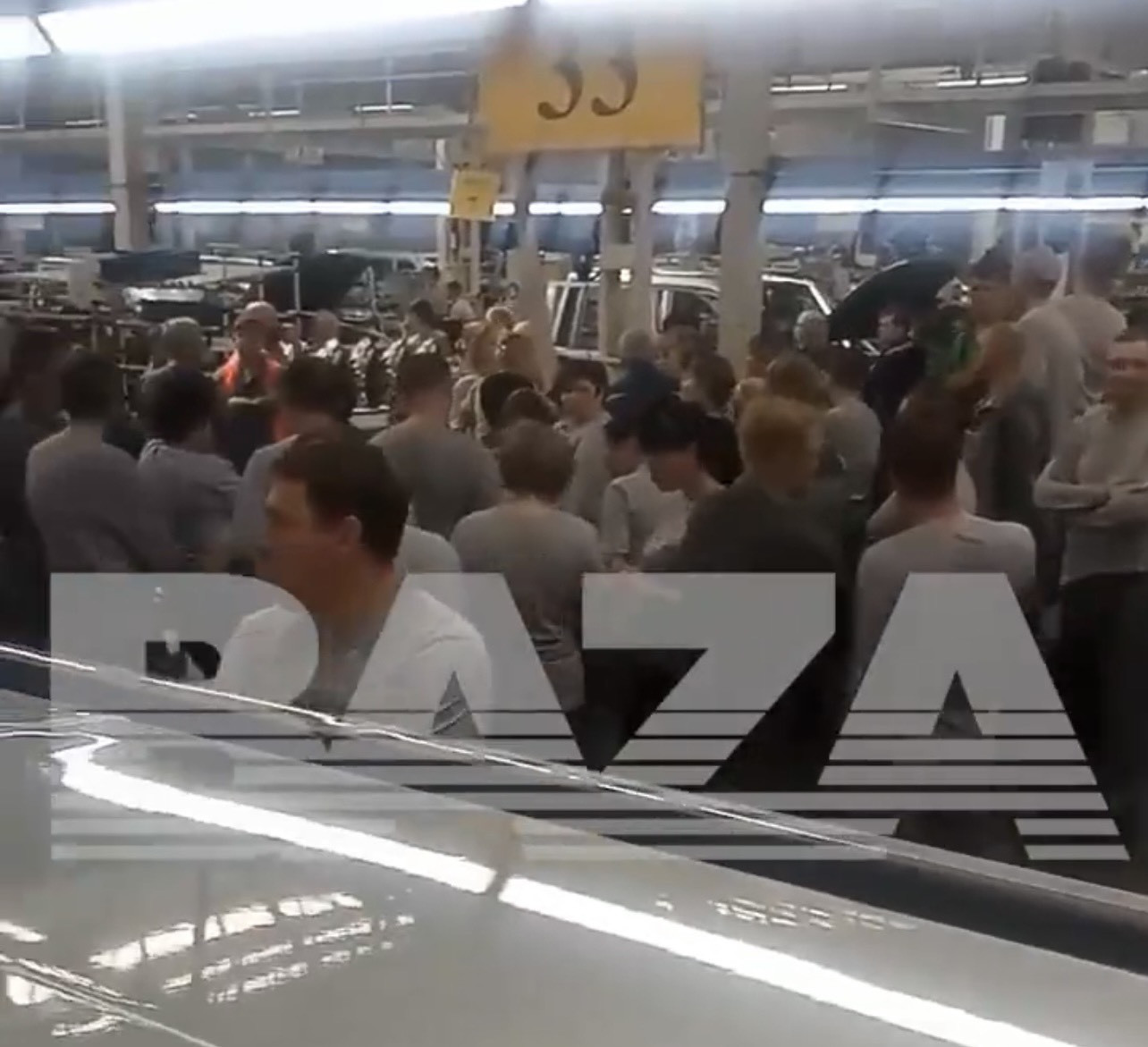 Công nhân tại nhà máy Ulyyanovsk của UAZ tổ chức đình công do không được trả lương. Ảnh cắt từ clip