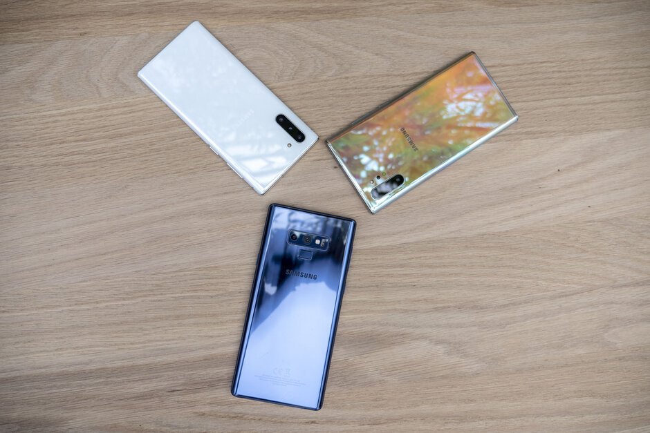 Từ trái qua: Galaxy Note 10, Galaxy Note 9, Galaxy Note 10 Plus |