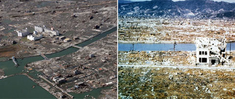 bức ảnh về sự tàn phá sau động đất và sóng thần hôm 11/3 ở đông bắc Nhật cho thấy sự tương đồng với cảnh tượng ở Hiroshima và Nagasaki