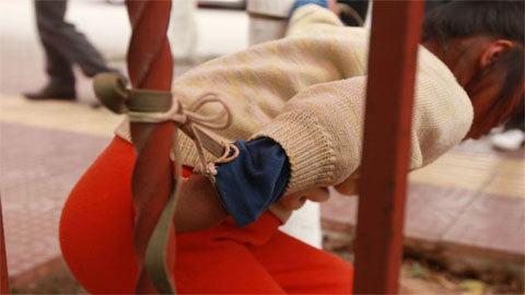 Bị buộc giữa một cái cây và hàng rào sắt, Li Luqin, 12 tuổi bị đối xử như chó chứ không phải với một con người. Dù vậy, bố bé khăng khăng cho rằng phải trói con mỗi ngày để ngăn chặn Luqin tự làm đau mình.
