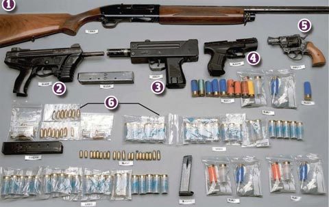 Số vũ khí đó bao gồm các súng tiểu liên đã nạp sẵn đạn, súng lục tự động và một khẩu súng săn cùng nhiều đạn dược. Một trong số các súng máy được giấu dưới gầm giường mà hai anh em ngủ chung.