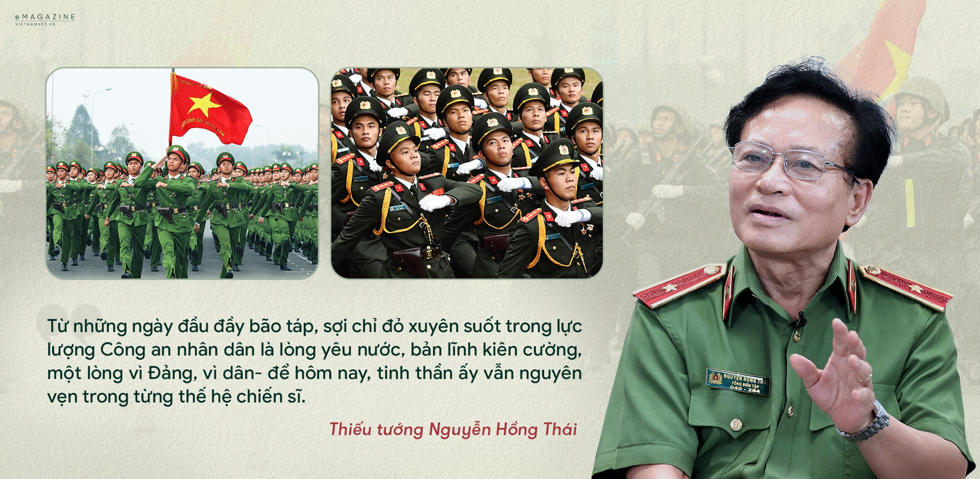 Thiếu tướng Nguyễn Hồng Thái phân tích, tên gọi "Công an nhân dân" là một khái niệm đặc biệt, chỉ có ở Việt Nam, thể hiện sâu sắc bản chất của lực lượng: từ nhân dân mà ra, vì nhân dân mà phục vụ. Tên gọi này được chính thức xác lập khi Bác Hồ gửi thư cho lực lượng Công an vào ngày 11/3/1948, trong đó có "Sáu điều dạy Công an nhân dân". Lời dạy của Bác: "Đối với nhân dân phải kính trọng, lễ phép" hay tư tưởng "Gác cho dân vui chơi, thức cho dân ngủ ngon, lấy niềm vui, hạnh phúc của nhân dân làm lẽ sống" của cố Bộ trưởng Trần Quốc Hoàn đã trở thành triết lý sống của mỗi chiến sĩ.