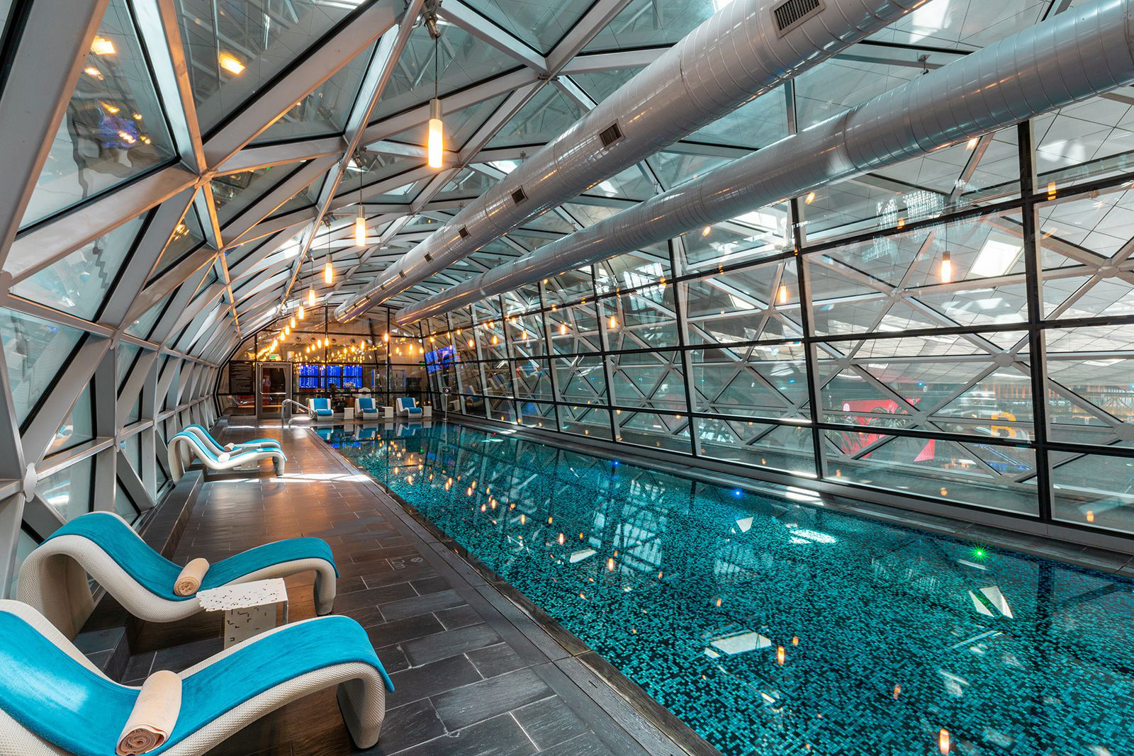 Khi bước vào bên trong nhà ga, hành khách được trải nghiệm không gian với trần nhà cao và những khoảng thông tầng mở rộng mang lại cảm giác thật rộng lớn, kết hợp những nét chấm phá của thiết kế và những tác phẩm nghệ thuật sắp đặt tạo ra một không gian vượt xa các quy ước.