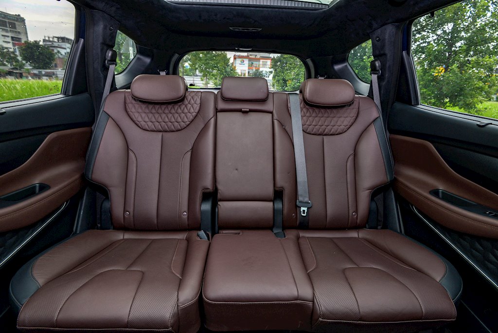Nội thất xe ấn tượng với da cao cấp, trần xe bọc da Alcatara cho cảm giác mềm mại dễ chịu, trung tâm taplo là màn hình cảm ứng 8 inch dạng Fly-Monitor, hỗ trợ Apple Carplay, bản đồ định vị vệ tinh bên cạnh các kết nối phổ thông. Xe trang bị điều hòa tự động, cửa sổ trời toàn cảnh, nhớ ghế lái 2 vị trí, ghế phụ chỉnh điện, thông gió và sưởi hàng ghế trước, điều hòa tự động 2 vùng độc lập hàng ghế trước, điều hòa độc lập hàng ghế thứ 3, sạc không dây,…Hệ thống tiện nghi trên SantaFe thế hệ mới giúp khách hàng tiếp cận được những chức năng của thế giới xe sang với mức giá hợp lí.