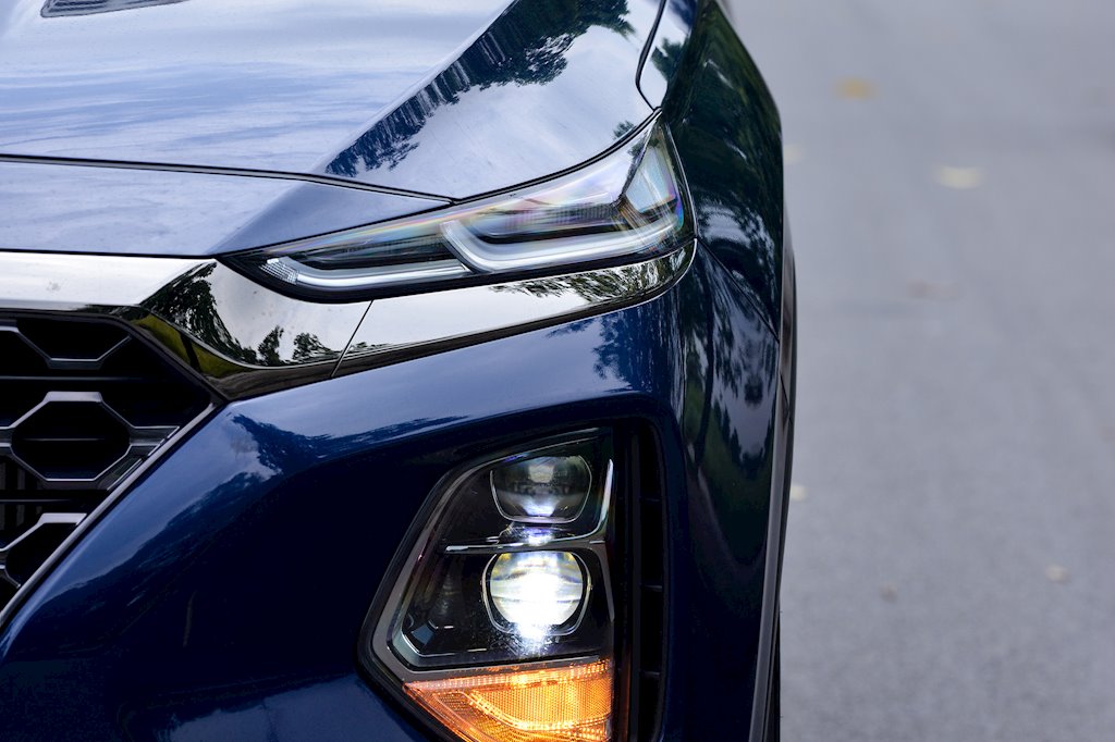 Bên cạnh khả năng vận hành, SantaFe 2019 cũng được đánh giá là 1 mẫu xe mới mẻ về thiết kế với tạo hình mạnh mẽ: lưới tản nhiệt hình lục giác theo phong cách Cascading Grill thác nước ấn tượng. Cụm đèn pha đặt dưới với 4 bóng Projector Full LED.