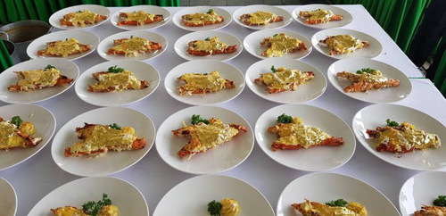 Tôm hùm dát vàng là một trong những món ăn được phục vụ tại bữa tiệc khiến các vị khách mời không khỏi oà lên thích thú và tò mò.