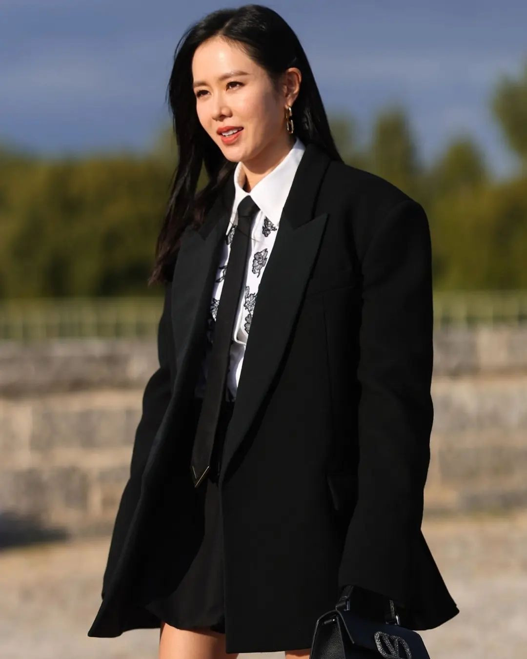 Sáng 6/7, diễn viên Son Ye Jin xuất hiện tại show thời trang cao cấp tại Pháp. Cô gây ấn tượng khi diện đồ menswear độc đáo, cá tính kết hợp blazer với sơ mi trắng họa tiết, thắt cà vạt. Cô để tóc thẳng, diện túi, boots cùng tông màu đen. Đây là set đồ thuộc bộ sưu tập Black Tie Thu Đông 2023-2024 của Valentino. Nữ diễn viên 'Hạ cánh nơi anh' được khen ngợi có nhan sắc rạng rỡ, trẻ trung. Đây cũng là lần đầu cô dự sự kiện thời trang sau khi sinh con trai đầu lòng cuối năm ngoái.Nữ diễn viên hạ sinh vào tháng 11/2022. Cô gây ngạc nhiên khi lấy lại vóc dáng nhanh chóng.Dù gương mặt nữ diễn viên hơi bầu bĩnh hơn trước một chút nhưng Son Ye Jin được khen ngợi vì thần thái rạng rỡ. Nữ diễn viên rạng ngời, vui tươi chào người hâm mộ khi tham dự sự kiện.Bà xã Hyun Bin đăng ảnh hậu trường xinh đẹp trước giờ dự show.Trước đó, Son Ye Jin cũng gây ấn tượng khi xuất hiện tại sân bay để lên đường sang Paris tham dự show diễn. Cô diện áo blazer trắng với chân váy ngắn.Nữ diễn viên thu hút mọi ánh nhìn với nhan sắc tươi trẻ cùng body thon gọn.