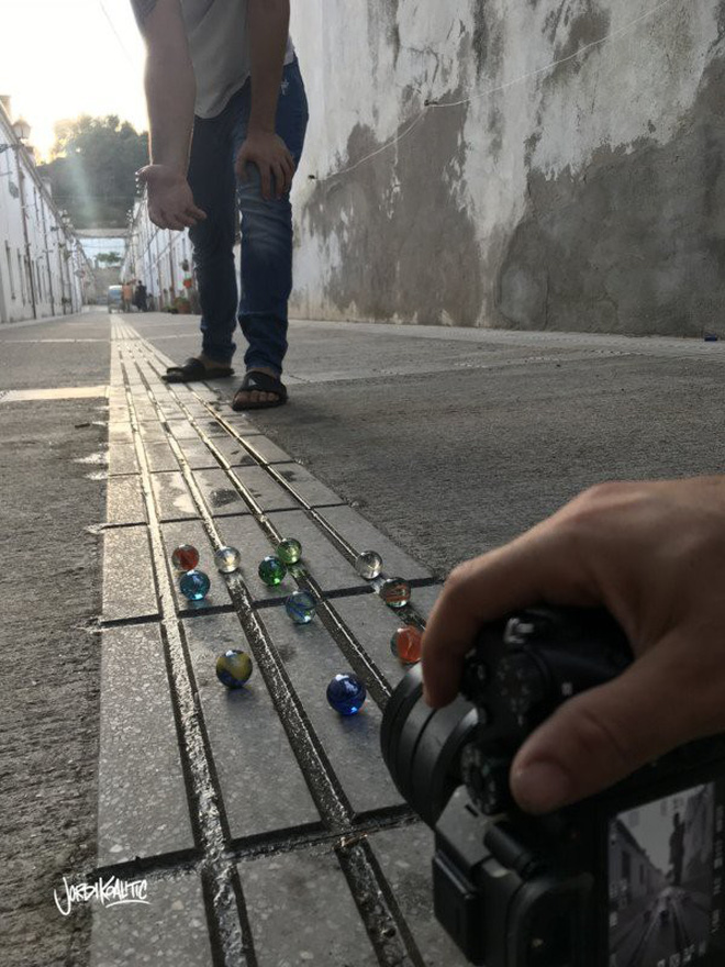 Chỉ bằng vài viên bi ve và dải rãnh nước trên vỉa hè đi bộ, có ai tưởng tượng kết quả sẽ ảo tung chảo đến thế này?