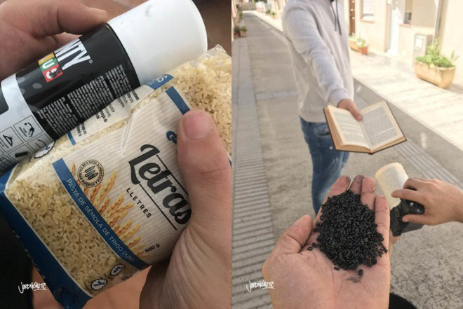 Kiếm đâu ra chữ để diễn rơi ra từ sách cho hợp? Mua một gói bim bim và sơn đen là xong.