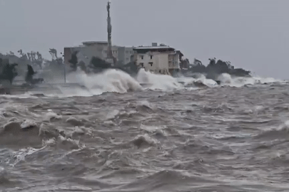 Sáng 22/7, tại khu vực biển Quất Lâm, nước biển dâng cao, nhiều đợt sóng lớn dồn dập, cao 2-3m, cuồn cuộn đập vào bờ, tung bọt trắng xóa.