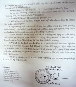 | ảnh: Báo cáo của Sở Y tế chỉ ra nhiều sai sót của nữ hộ sinh khi để xẩy ra vụ tai biến sản khoa khiến 2 cháu bé thiệt mạng. |