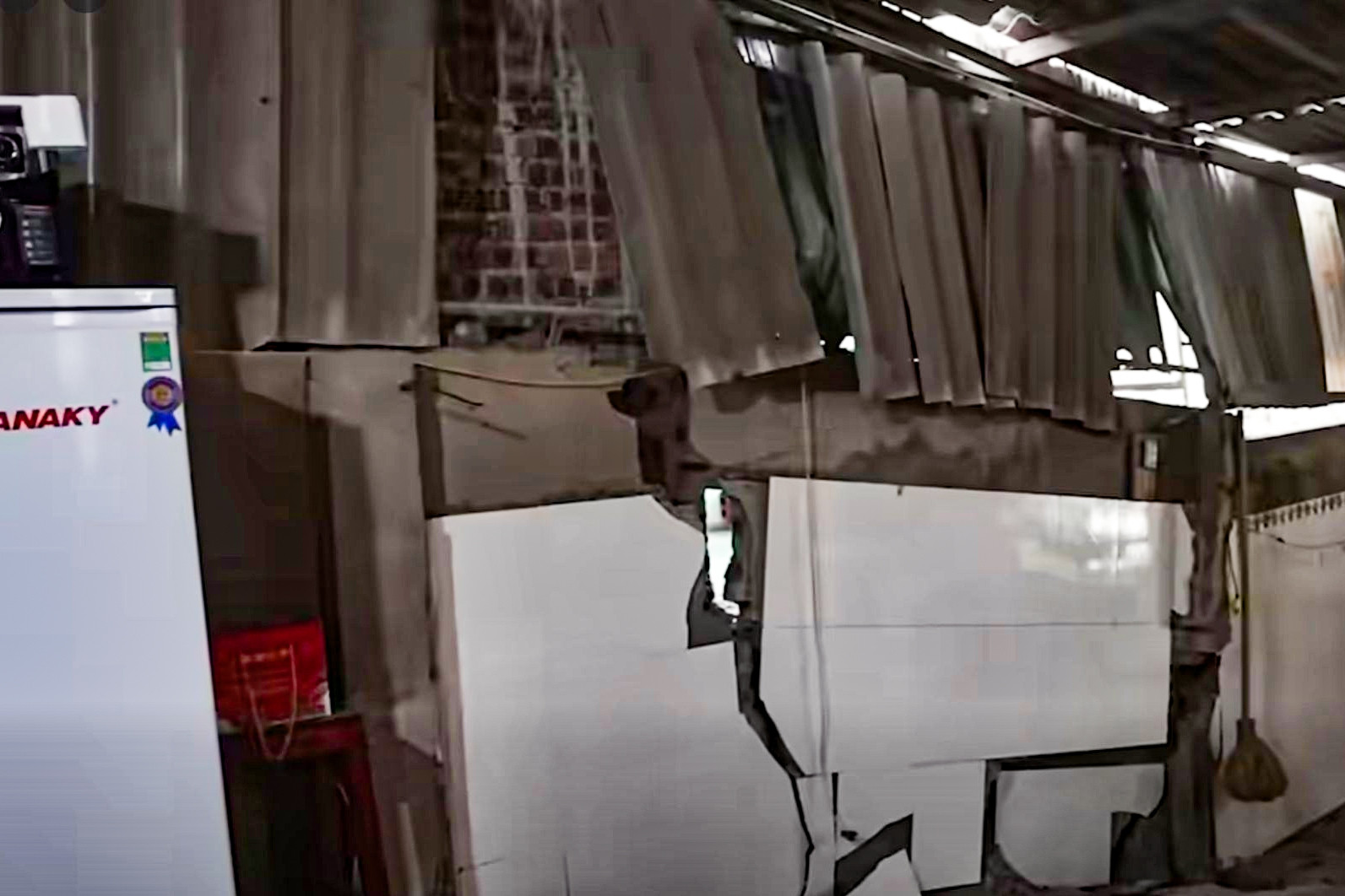 Cũng trong tình cảnh như gia đình ông Hà, ông Nguyễn Văn Tới cho biết, chỉ trong vòng một ngày, toàn bộ phần sau nhà, bếp và công trình phụ bị hư hỏng nặng nề. Nền nhà sụt lún, tường nứt toác, phần trước ngôi nhà hiện chênh vênh trên nền đất không còn vững chắc.