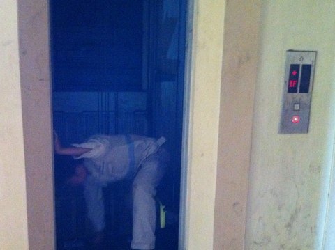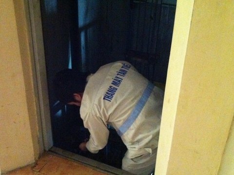 Thợ sửa thang máy đang sửa thang tại tòa nhà Định Công