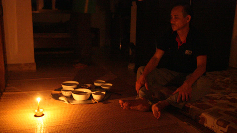 | Gia đình anh Hùng với bữa cơm tối trong ánh nến (ảnh chụp tối 20/4) |