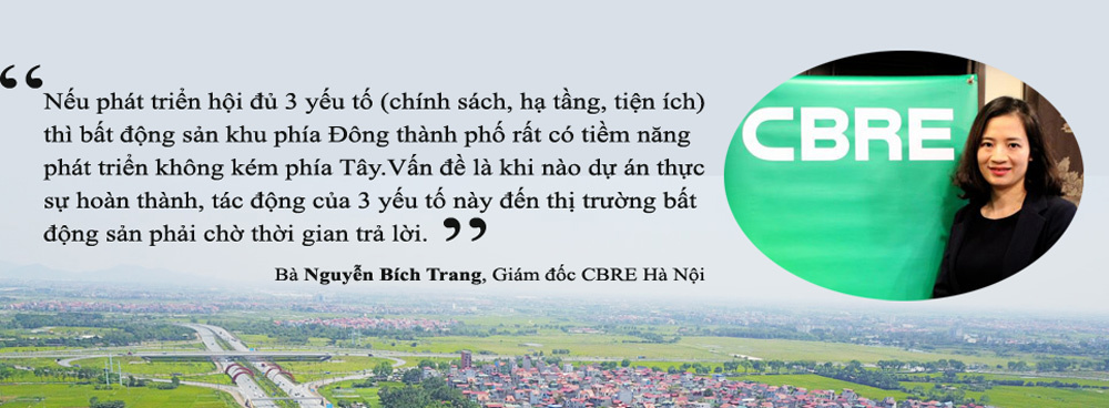 Nhận định về giá đất nền tại Đông Anh đang nóng lên từng ngày bà Đỗ Thu Hằng, Giám đốc bộ phận tư vấn và nghiên cứu Savills, cho hay: "Gần đây, hàng loạt công trình giao thông quan trọng tại khu vực Đông Anh đã được đưa vào hoạt động, các dự án lớn cũng đổ bộ vào Đông Anh đã khiến khu vực này thu hút các nhà đầu tư. Chính vì vậy, giá BĐS bám sát các trục chính quy hoạch tăng là điều dễ hiểu".