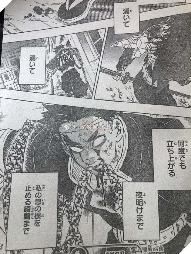 Cuối spolier chapter 197 cho thấy tất cả các Thợ Săn Quỷ đều đang cố gắng đứng dậy quyết chiến với Muzan một trận cuối cùng.
