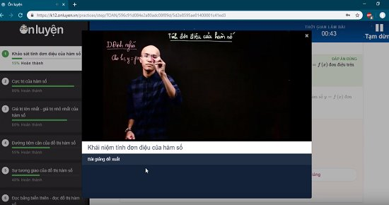 Onluyen.vn là mô hình cá nhân hoá học tập, giúp các em học sinh củng cố kiến thức, xây dựng một lộ trình học tập phù hợp với năng lực của bản thân. Theo chức năng tự luyện trên Onluyen.vn, các bài tập theo ngân hàng câu hỏi trắc nghiệm được sắp xếp từ dễ đến khó. Học sinh sẽ được bổ sung lý thuyết ngay trong quá trình làm bài nhờ video bài giảng và thẻ kiến thức liên quan gắn với từng câu hỏi.