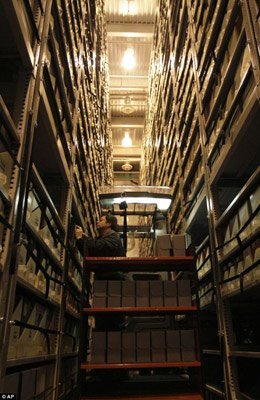 Giáo sư Dennis của Đại học Stanford kiểm tra các tài liệu cất giữ tại một địa điểm bí mật. |