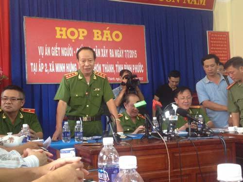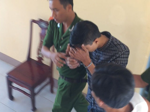 | Nghi can Vũ Văn Tiến tại trụ sở công an huyện Chơn Thành, tỉnh Bình Phước |