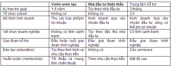 Lâu nay tồn tại phổ biến hai hình thức trợ giúp doanh nghiệp khởi nghiệp là vườn ươm và tăng tốc khởi nghiệp. Các vườn ươm là nơi bảo trợ cho doanh nghiệp từ khi khởi nghiệp cho tới lúc trưởng thành, trong khi khóa tăng tốc khởi nghiệp chỉ trợ giúp cho doanh nghiệp khởi nghiệp trong một khung thời gian ngắn hơn, với những bài tập mang tính bắt buộc mà các doanh nghiệp phải hoàn thành nếu muốn trụ lại cho tới khi tốt nghiệp.