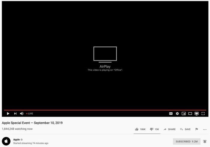 Theo truyền thống, Apple luôn phát sóng trực tiếp các sự kiện của mình trên trang web và ứng dụng Events của Apple TV. Sự kiện ra mắt iPhone 11 năm nay đánh dấu lần đầu tiên Apple livestream một sự kiện quan trọng bậc nhất trên nền tảng YouTube của Google.