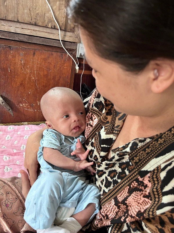 Hai tháng trôi qua kể từ lúc con chào đời là khoảng thời gian vợ chồng anh Vũ Văn Tuyến, chị Trần Thị Bình (quê Thái Bình) sống trong sợ hãi, lo lắng. Bởi không ít lần, bác sĩ từng khuyên gia đình chuẩn bị lo hậu sự cho bé Vũ Ngọc Thọ, con trai anh chị.