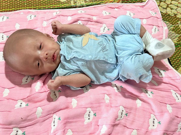 Tuy nhiên, ngay sau khi vừa cất tiếng khóc chào đời, bé Thọ đã bị suy hô hấp nặng, phát hiện không có hậu môn, nguy cơ tử vong rất cao. Ngay lập tức, vợ chồng anh Tuyến vội đưa con lên bệnh viện tuyến Trung ương cấp cứu.