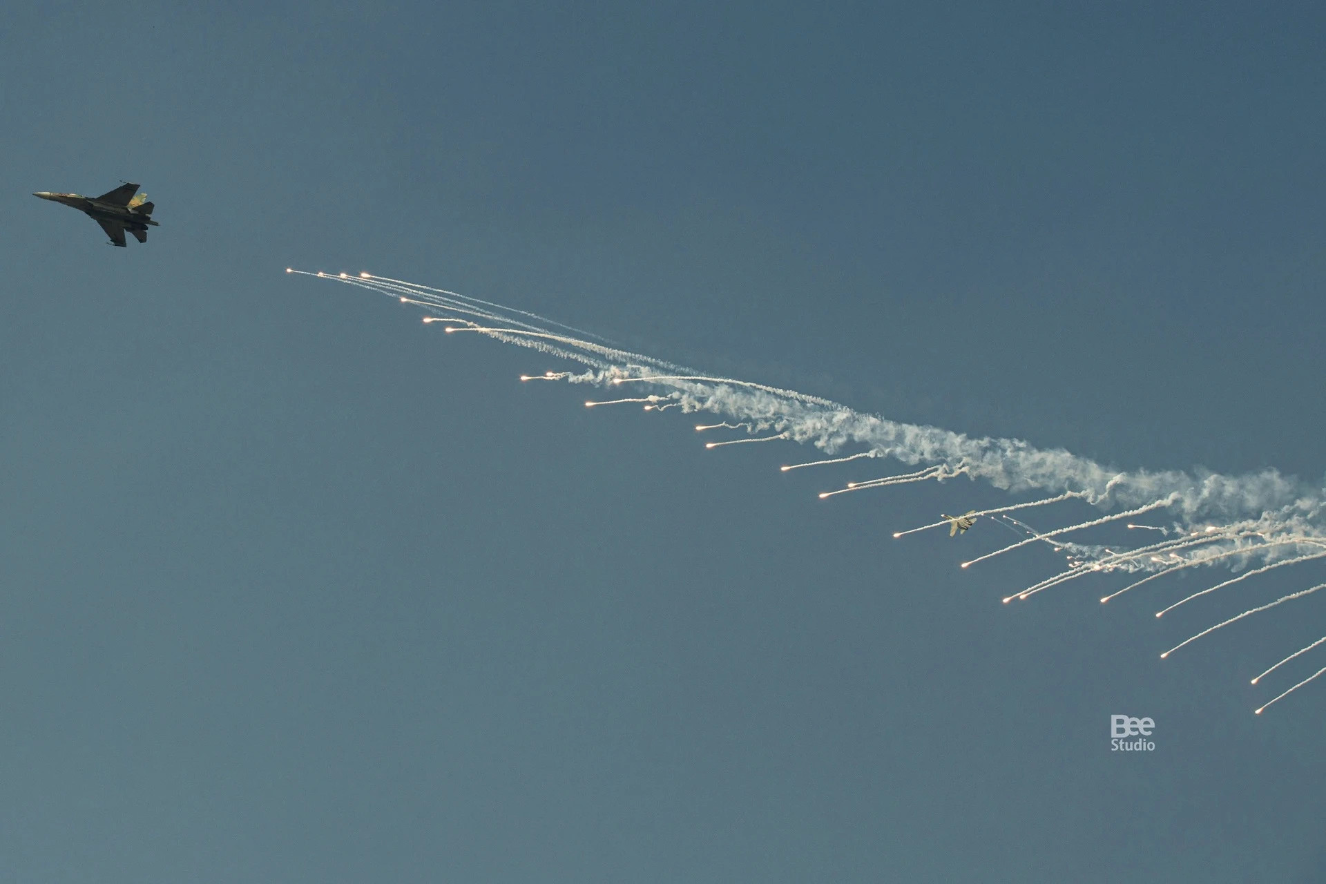 Mỗi tiêm kích bắn 48 quả đạn nhiễu, mang đến hình ảnh mãn nhãn cho người xem.