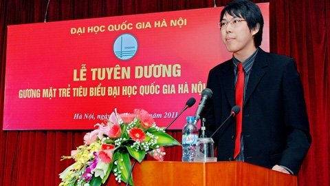 | Pisit trong lễ tuyên dương Gương mặt trẻ tiêu biểu ĐH Quốc gia HN năm 2011. (Ảnh do nhân vật cung cấp). |