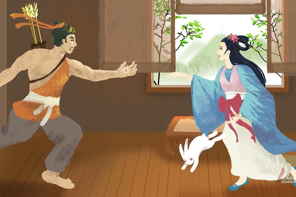 Sau này, một người có tài bắn cung kiệt xuất tên là Hậu Nghệ đã sử dụng cung tên bắn rơi chín mặt trời để giải cứu muôn loài trên thế gian khỏi nắng nóng. Nhờ chiến tích lẫy lừng đó, Hậu Nghệ đã được người dân tôn vinh là anh hùng, và được các vị tiên ban cho một viên thuốc bất tử coi như phần thưởng.